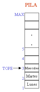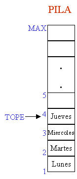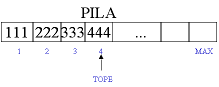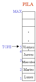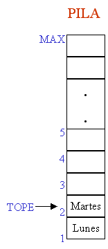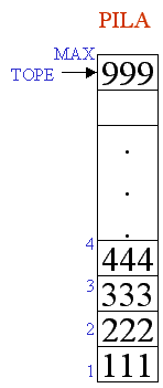 TOPE. MAX es el máximo número de elementos que puede almacenar PILA}