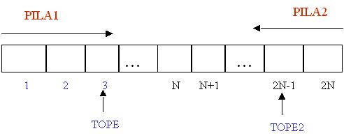 ** La pila1 ocupará de la posición 1 en adelante, mientras que la pila2