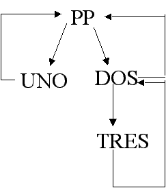principal (PP) que llama a los subprogramas UNO y DOS. A su vez, el