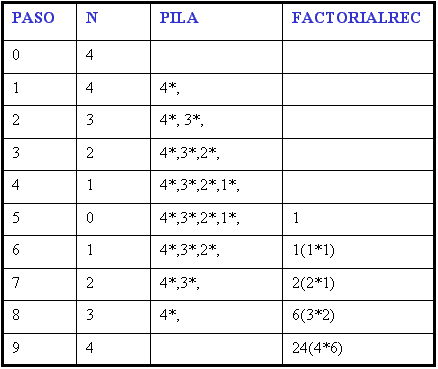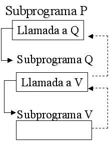 que llama a subprograma, internamente se usan pilas para guardar el estado de